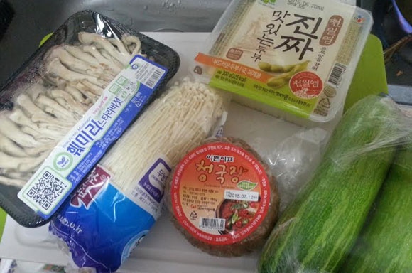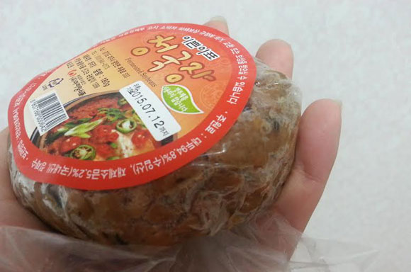 それは、マニアックな韓国料理のひとつである「チョングッチャン」。材料に使うのは発酵豆で、ほぼ納豆と同じ匂いを持ちながらも、ネバネバ感は控えめな、豆のかたまりです。名前もそのまま「チョングッチャン」として、韓国では割とどこのスーパーでも販売されています。この、チョングッチャンと味噌を混ぜ合わせた「納豆味噌汁」のようなものが「チョングッチャン」です。お店で食べられるものには、ものすごい強烈な匂いを発するものから激辛のものまでさまざまですが、自宅で作ると、好きな具材を入れることができるので、なお良し!さっそくトライ!