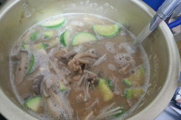そこへ、味噌を少し入れるのですが、私は韓国のものではなく、日本の味噌を使いました。出汁入りのものだったので、ちょっぴり和風な香りに早変わり!