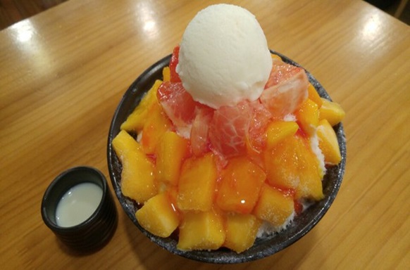 こちら韓国の店舗では4月30日より新メニュー「マンゴーサムジャモンピンス」が販売されていますよ。マンゴーとグレープフルーツ、アイスクリームがふんだんに乗せられたゴージャスな一品。トロピカルな味わいが夏の訪れを感じさせてくれます。