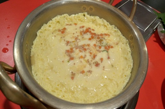 チュックミと一緒に食べたいものは、刺激をやわらげてくれるスープや、ケランチム(たまご蒸し)など。こちらのお店では、テーブルにつくとコンロでケランチムを蒸してくれました。