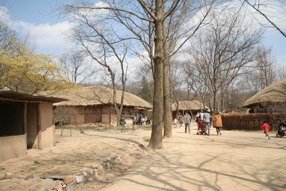 日本語ガイドツアーの後は敷地内にある国立古宮博物館と民族博物館を見てまわりました。翌日行った場所は、今回の旅行で一番のメイン「民族村」でした。ここはソウルから地下鉄で約1時間、更にバスで約30分かかるので早朝ホテルを出て、途中コンビニで朝食におにぎりを購入して行きました。民族村の最寄駅は水原で、そこには観光案内所があります。そこでチケットをもらい民族村までは無料シャトルバスで行く事ができました。